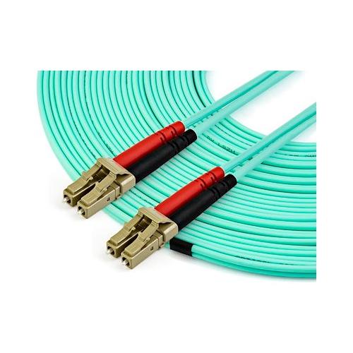 Questo cavo patch in fibra ottica duplex multimodale LC-LC OM3, realizzato con fibra da 50/125 micron, supporta la trasmissione dati a larghezza di banda elevata su una connessione Ethernet da 10 Gigabit.