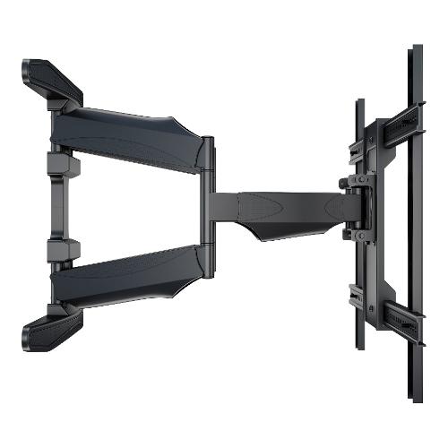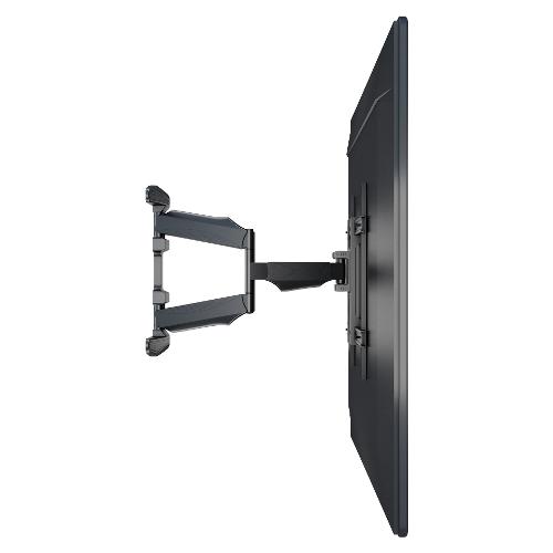 Supporto da parete extra slim dotato di doppio braccio multisnodo resistente in grado di sostenere il peso del monitor durante i movimenti di inclinazione, rotazione e flessione