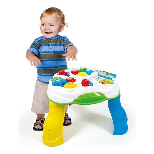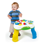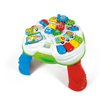 Un coloratissimo tavolo ricco di attività educative per apprendere i numeri, le lettere, le forme e i colori, i nomi degli animali e i loro versi. Con tanti effetti luminosi, allegre canzoncine e filastrocche. Stimola i sensi e la manualità dei più piccoli. Il libriccino aiuta i bambini a riconoscere gli animali e i loro versi, il piano li fa avvicinare al mondo della musica e insegna le prime letterine, gli ingranaggi li portano alla scoperta dei primi numeri e favoriscono, assieme alle altre attività meccaniche, lo sviluppo delle abilità motorie.