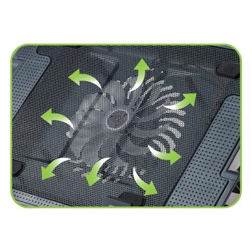 Design ergonomico con 5 diverse altezze per assicurare un perfetto posizionamento (da 6,5° a 45°) - Dotato di silenziosa ventola da 14 cm