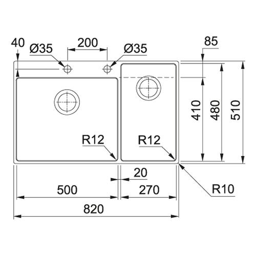Lavello 1 vasca e mezza (82x51cm) Bxx 220 50 27 BOX Inox Spazzolato 127 0586 160