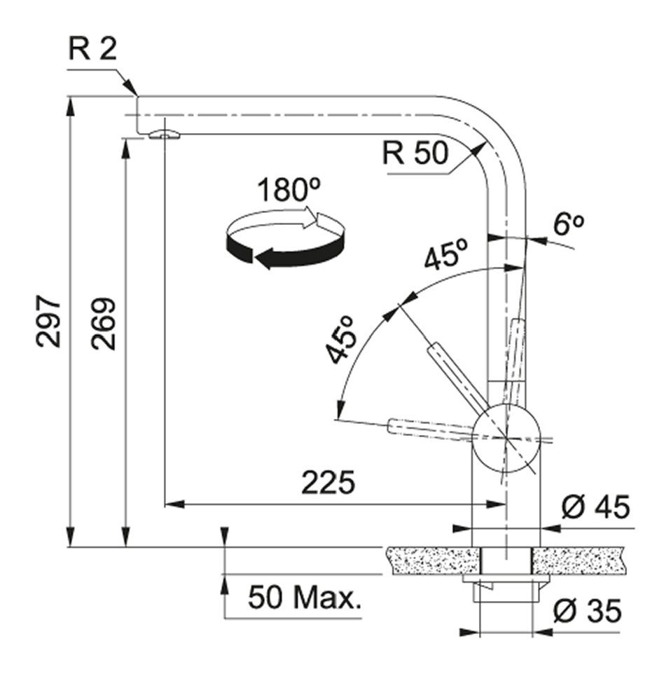 Miscelatore lavello monocomando ATLAS Inox spazzolato 115 0521 435