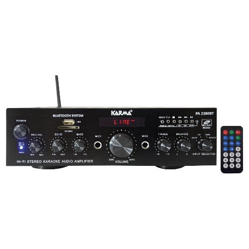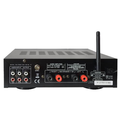 Amplificatore stereo dalle dimensioni contenute dotato di DISPLAY. Progettato per l'utilizzo in negozi, reception o abitazioni.