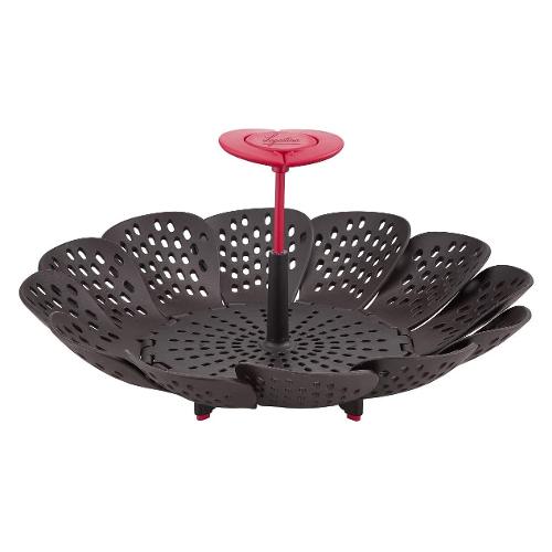 Il cestello vapore è ideato per adattarsi a tutte le dimensioni dai 16 cm in su, grazie alle alette mobili. Inoltre è dotato di pomolo allungabile che facilita l'inserimento e la rimozione del cestello stesso, senza rischio di scottature.