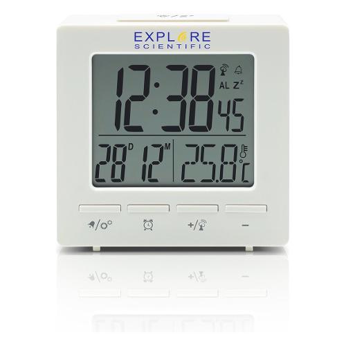 Orologio radiocontrollato da viaggio, digitale, con misurazione della temperatura interna. Grazie a un design compatto e moderno sfrutta un display retroilluminato per rendere la consultazione più confortevole in assenza di luce. Consente inoltre di impostare due sveglie, l'una per i giorni feriali e l'altra per il weekend (entrambe con funzione snooze).