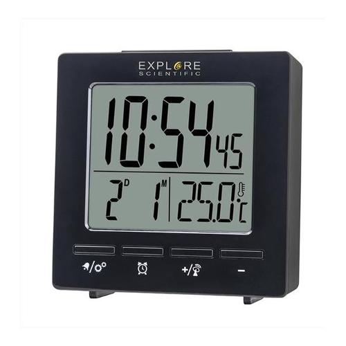 Orologio radiocontrollato da viaggio, digitale, con misurazione della temperatura interna. Grazie a un design compatto e moderno sfrutta un display retroilluminato per rendere la consultazione più confortevole in assenza di luce. Consente inoltre di impostare due sveglie, l'una per i giorni feriali e l'altra per il weekend (entrambe con funzione snooze).