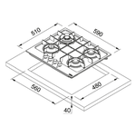 Piano cottura gas 4 zone MARIS Fhma 604 3G Dc Oy C Oyster (60cm)
