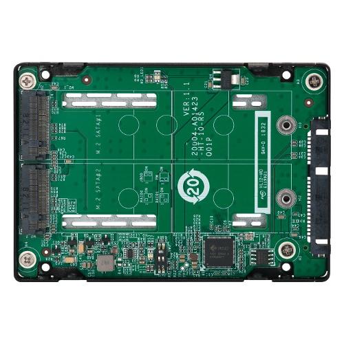 Il QDA-A2MAR può alloggiare due unità SSD SATA M.2 in un singolo vano unità SATA da 2,5”. Per il QDA-A2MAR non sono necessari driver software, può inoltre essere installato su un PC/workstation (Windows, Linux) o QNAP NAS per aggiungere in modo flessibile le elevate prestazioni degli SSD SATA M.2 con configurazioni RAID in modo da soddisfare le diverse richieste di archiviazione.