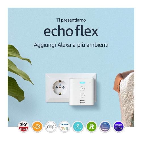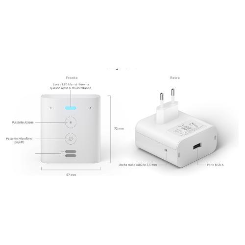 Questo dispositivo Echo con spina integrata ti permette di usare Alexa in più ambienti di casa tua.