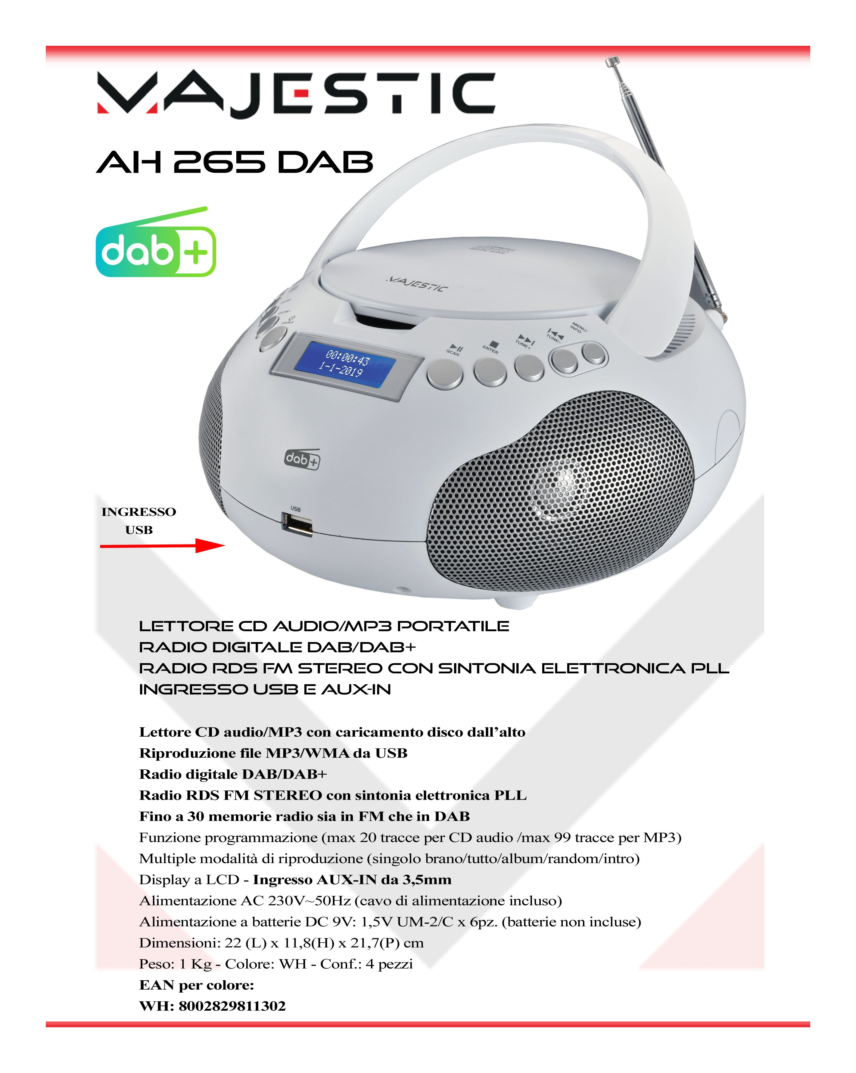 Radio portatile Ah 265 Dab Bianco 102265