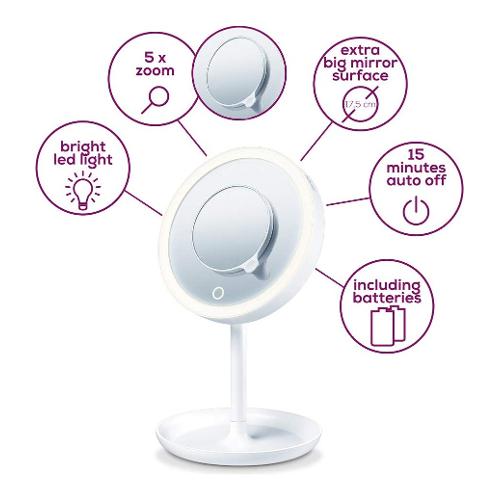 Specchio trucco da appoggio con luce e ingranditore 5x Bs45 (20x19x33,7cm) Bianco 58404