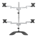 Maggiore produttività e spazio di lavoro personalizzato con questo supporto per quattro monitor che consente di tenere sospesi 4 monitor sopra la scrivania. I quattro bracci articolabili permettono un ampio raggio di movimento per assicurare una visione ottimale. La base autoportante offre la massima flessibilità di posizionamento all'interno dell'ambiente di lavoro.