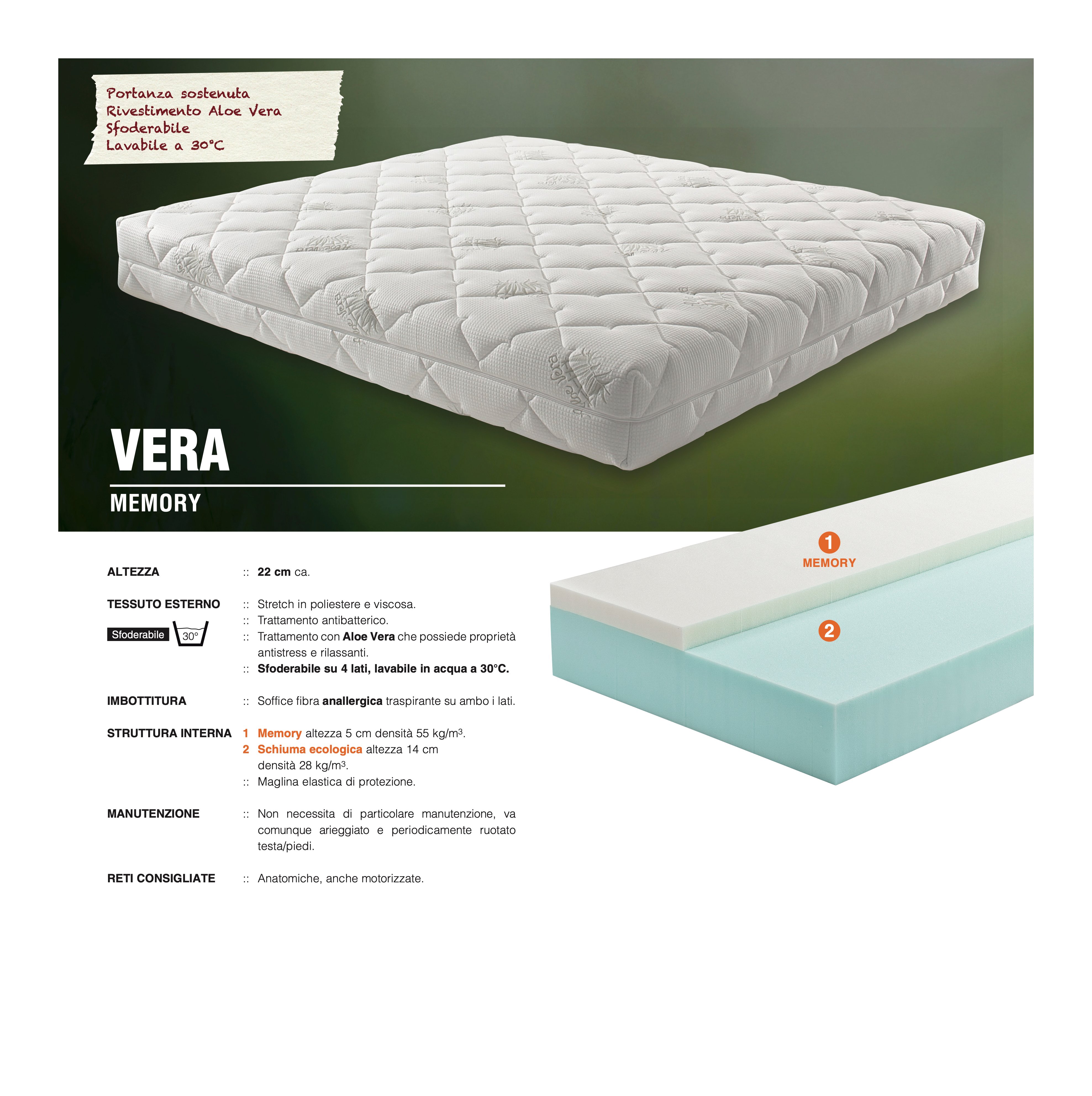 Portanza sostenuta. Rivestimento Aloe Vera. Sfoderabile e lavabile a 30°C