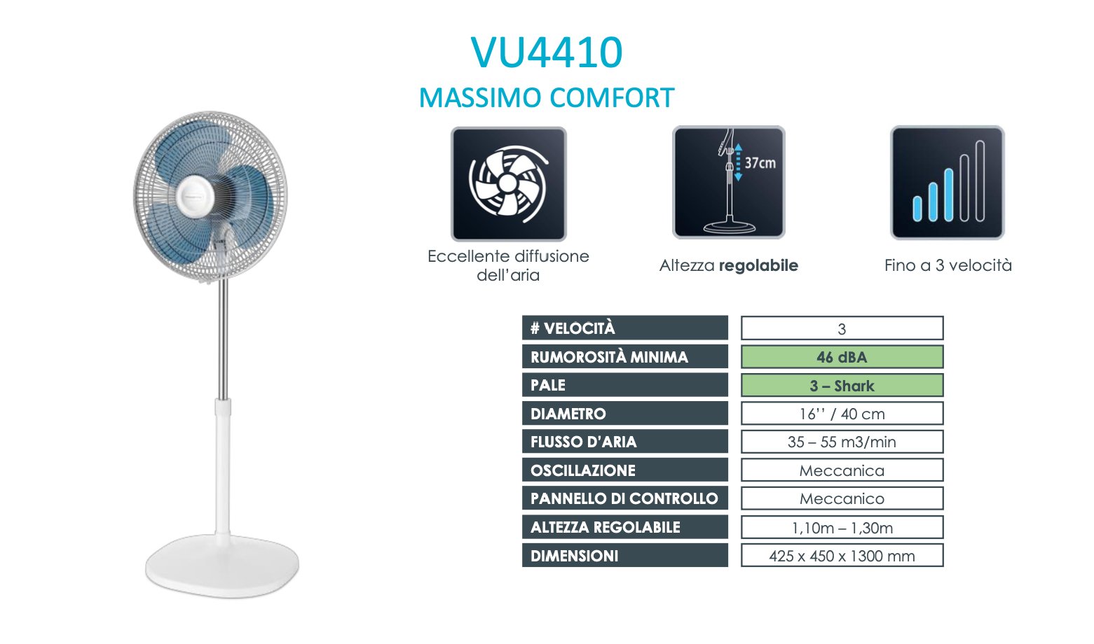 Con il ventilatore Essential + di Rowenta, avrai una ventilazione potente e silenziosa. Buone prestazioni, tre velocità e una serie di funzioni confortevoli.