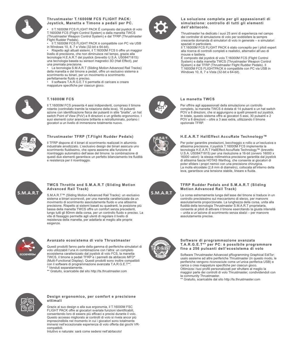 Il T.16000M FCS FLIGHT PACK è stato concepito per i piloti esperti alla ricerca di controlli completi e realistici, alternativi all’uso di mouse e tastiera.