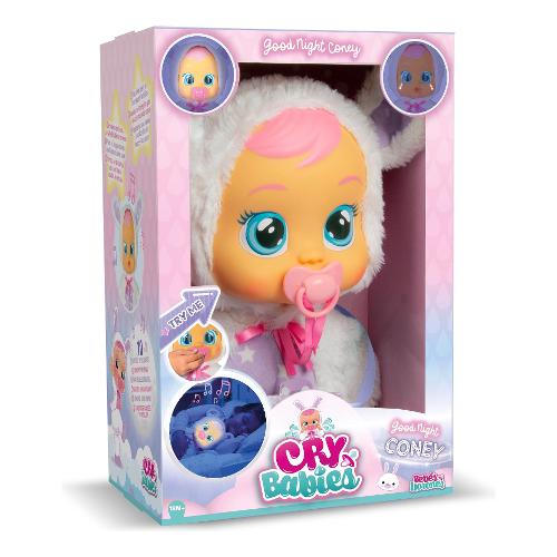 Coney good night aiuta i bambini ad addormentarsi nel modo più magico. Ecco perché è super morbido. Quando perde il ciuccio le lacrime si illuminano al buio e piange ma se le ridai il ciuccio, il suo visino si illumina. Premendo il pancino suona fino a 10 minuti di dolce ninna nanna. Porta Coney a fare la nanna con te!
