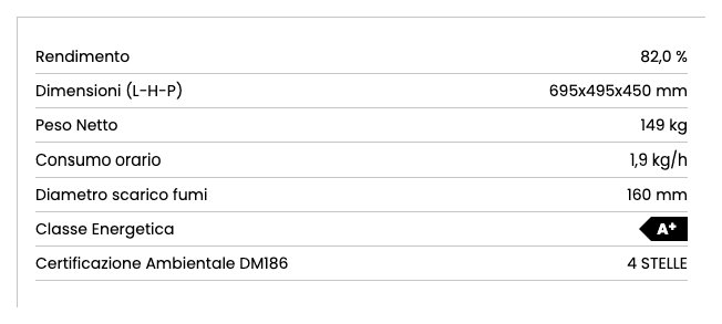 Caminetto 6,7kW INSERTO 70 H49 4.0 Nero 6016714 Classe A+