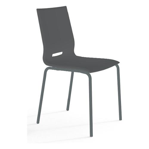 Sedia dalle forme essenziali con scocca in Polipropilene rinforzato in fibra di vetro, sapientemente modellata per una migliore ergonomia. Adatta sia all’uso residenziale che contract