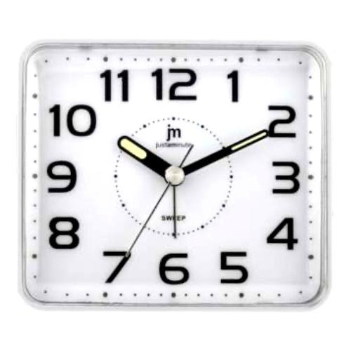 Sveglia al quarzo analogica con doppia luce (illuminazione quadrante: luce verde - attivazione allarme: luce blu intermittente al centro del quadrante) , snooze (ripetizione dopo 5 minuti) e suoneria bip-bip con crescendo. Movimento continuo silenzioso.