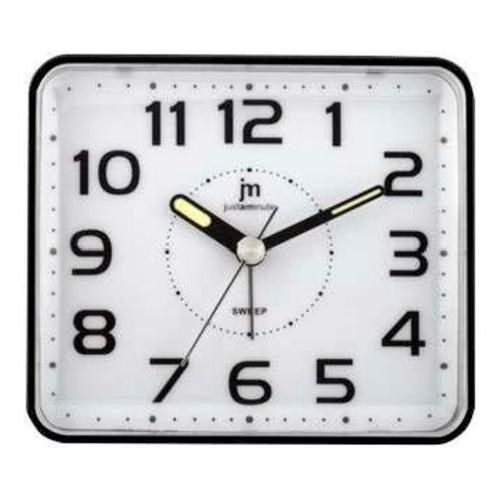 Sveglia al quarzo analogica con doppia luce (illuminazione quadrante: luce verde - attivazione allarme: luce blu intermittente al centro del quadrante) , snooze (ripetizione dopo 5 minuti) e suoneria bip-bip con crescendo. Movimento continuo silenzioso.