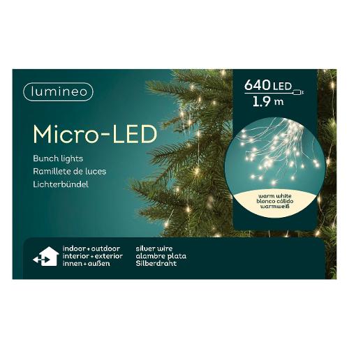 Filo 640 luci - MICROLED Bianco caldo (1,9 + 5 mt) Fascio 32 fili Luce fissa IP44 497009
