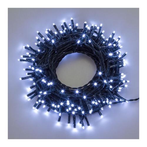 Catena lineare tlg 360 miniled bianco ø3mm reflex, timer memory controller 8 giochi di luce selezionabili con timer on-off 8-16 ore disinseribile tramite pulsante luminoso, uso esterno, cavo verde, dimensioni 4 + 25,7m, scatola lusso color (xkc art . Led tlg 360-c).