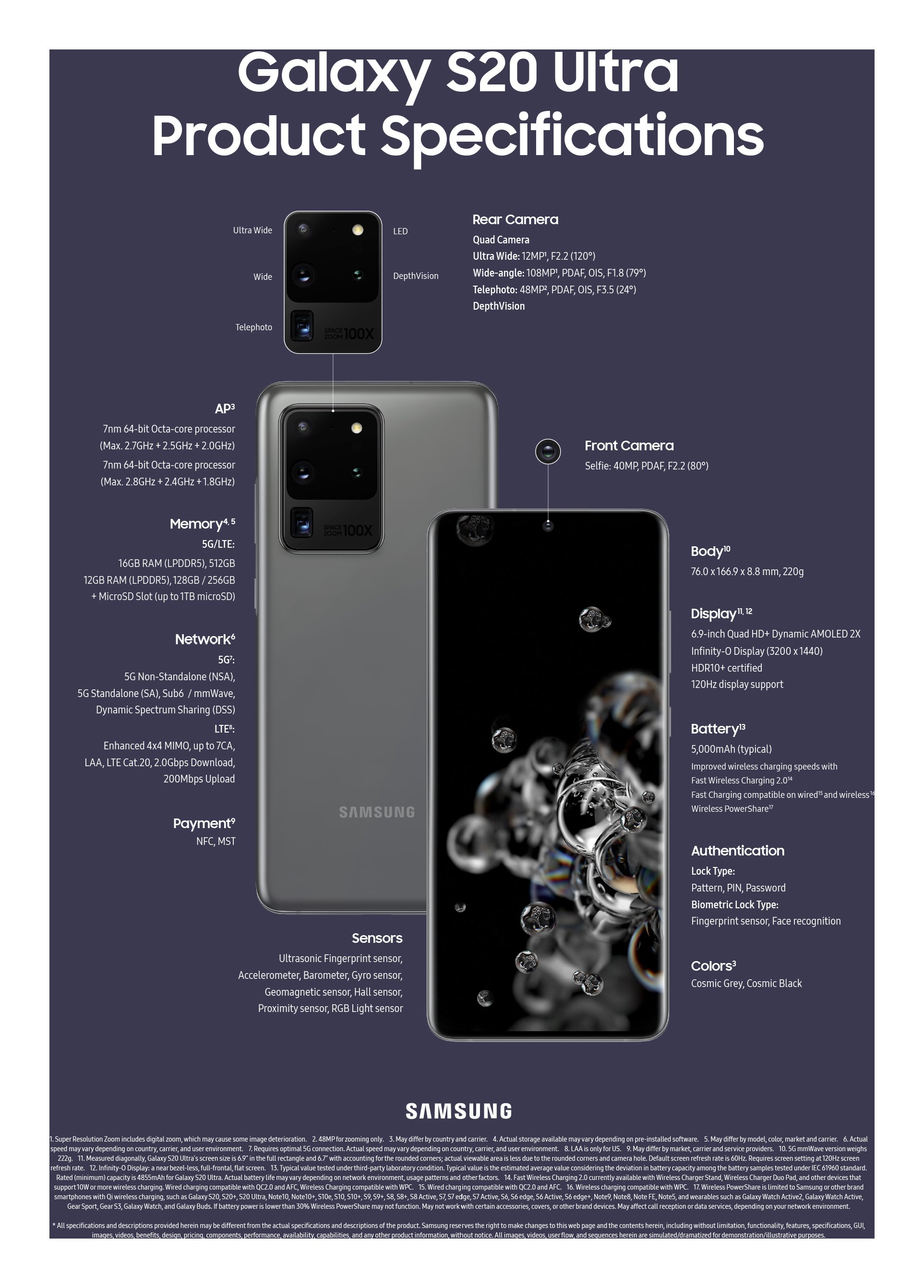 Smartphone 6,9" S SERIES Galaxy S20 Ultra 5G TIM 5G Cosmic gray ( 128GB Ram 5000mAh ) G988BG TIM