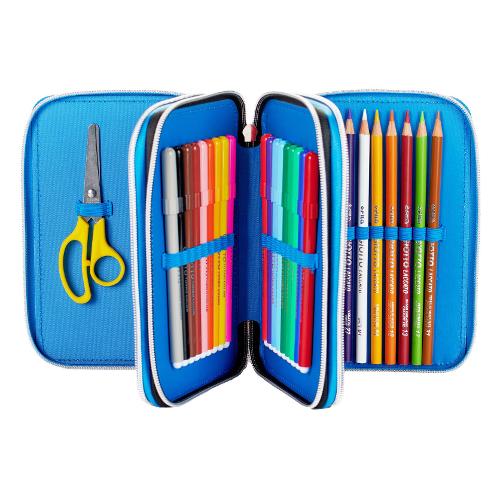 Astuccio triplo accessoriato 36 colori con penne e accessori GORMITI Azzurro e Arancio GR935000
