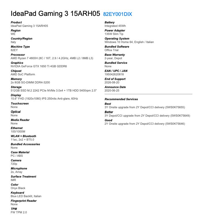 Notebook 15,6" IDEAPAD GAMING 3 15IMH05 ( AMD Ryzen 7 16GB 1,51TB ) Black 82EY001DIX