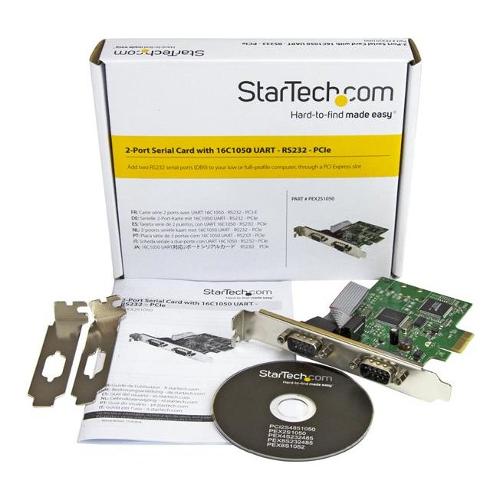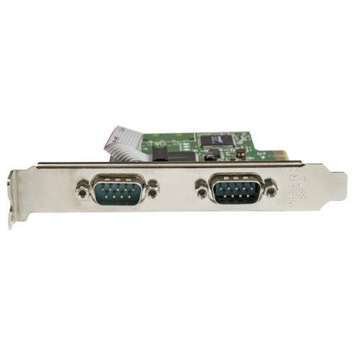 Consente di aggiungere due porte seriali RS232 (DB9) ad alte prestazioni a un computer, a profilo completo o a basso profilo, tramite uno slot PCI Express