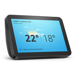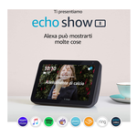 Echo Show 8 si connette ad Alexa per mostrarti immagini nitide su uno schermo HD da 8” e offrirti un audio stereo potente. Segui il testo di una canzone sullo schermo con Amazon Music, imposta timer e sveglie, mostra le tue foto preferite, controlla il meteo e la situazione del traffico prima di uscire di casa e resta sempre aggiornato sulle ultime notizie.