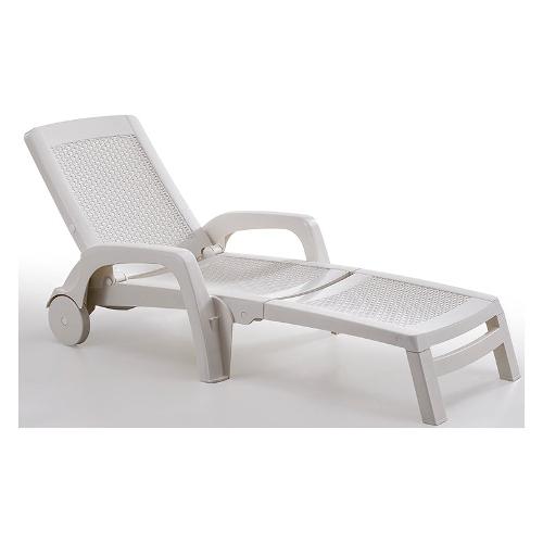Lettino pieghevole, impilabile e con vano porta oggetti. Finitura Rattan