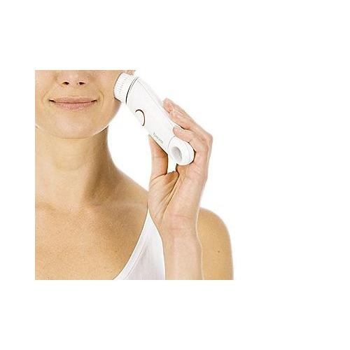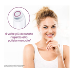 La spazzola facciale elettrica deterge la pelle del viso 4 volte più in profondità rispetto alla pulizia manuale. Grazie a un'azione delicata e profonda, la pelle risulterà visibilmente più morbida, illuminando il vostro viso. Utilizzabile sotto la doccia e nella vasca. Alimentazione 2 batterie AAA da 1,5 V.