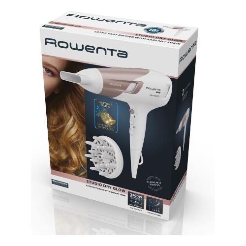 L'asciugacapelli Studio Dry Glow di Rowenta offre la combinazione perfetta di asciugatura rapida e stile sorprendente. Il booster ionico aggiunge luminosità, con benefici di riduzione statica per ottenere capelli lisci, gestibili e migliorati.
