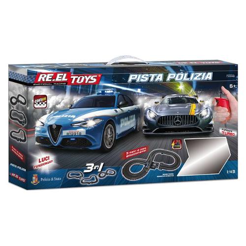 Nella confezione sono comprese due auto licenziate in scala 1:43 con luci, una modello alfa romeo polizia e una modello mercedes