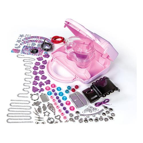Una bellissima borsetta fashion con chiusura metallizzata che racchiude un romantico scrigno ricco di accessori, per creare gioielli super-glam! Un originale kit con tante perline sfaccettate e metallizzate, catenine e ciondoli da personalizzare per realizzare gioielli alla moda! La bag è pensata per poter riporre tutti i componenti e le creazioni, per portare il proprio atelier dei gioielli sempre con sé!