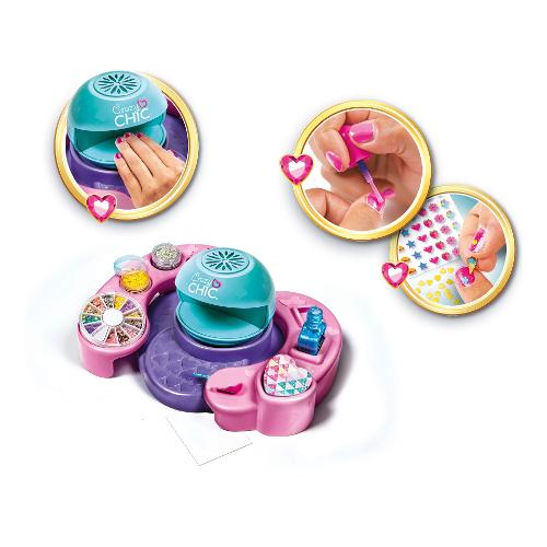 Per un look all'ultima moda un vero e proprio studio per realizzare una nail art perfetta! La fantastica macchina asciuga smalto in poco tempo donerà alle unghie un look davvero unico! Contiene tanti smalti colorati, limetta, glitter e diversi componenti decorativi per unghie. Un gioco che stimola la creatività nel campo beauty e la manualità.