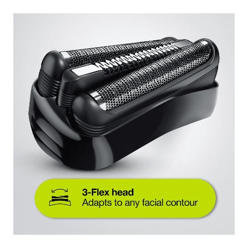 I tre elementi di rasatura mobili (testina 3-Flex) si adattano a tutti i contorni del viso per il massimo contatto con la pelle. Efficace anche sulle difficili barbe di tre giorni.