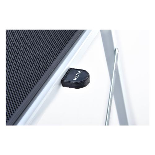Sgabello in acciaio con parapetto alto, ideale per la casa, l’ufficio, il negozio. Maneggevole e pratico, quando è chiuso ha un ingombro di 13cm, è dotato di parapetto di sicurezza. I piedini sono in gomma antiscivolo e antigraffio