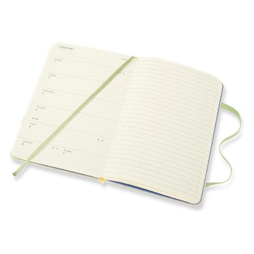 Il layout da agenda settimanale fa spazio a pianificazione e annotazioni: le due pagine affiancate all’interno mostrano a sinistra i sette giorni della settimana e, sulla destra, un'intera pagina a righe per appunti, attività e riflessioni. Datata da luglio 2020 a dicembre 2021, la sezione di apertura mostra l’intero anno in un’unica panoramica, prima di offrire un approfondimento mese per mese. Le pagine introduttive, inoltre, includono informazioni pratiche per programmare viaggi all’estero, come fusi orari internazionali e misure e conversioni differenti in tutto il mondo.