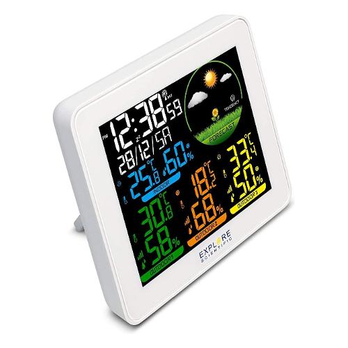 Con un display a colori in grado di riprodurre icone e numeri con una definizione superiore, la weather station WSH4005S di Explore Scientific consente un monitoraggio ambientale completo. Grazie infatti al sensore interno di temperatura e umidità e ai tre sensori esterni, basta un solo sguardo per conoscere il trend termico e igrometrico degli ambienti sotto osservazione. La visualizzazione con colori diversi (bianco, azzurro, verde, arancio e giallo) ne rende più piacevole l’uso. Supporta fino a 3 sensori tutti inclusi nella confezione.