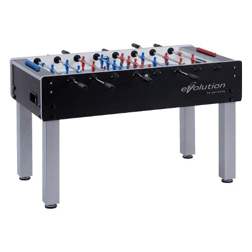 La versione Evolution del G-500 si distingue per l'elegante abbinamento nero e silver con il logo che spicca sul mobile, i piedini regolabili di serie e le manopole ergonomiche, per una presa ideale. Raffinato quanto i modelli ITSF, offre le caratteristiche apprezzate dai giocatori italiani: il portiere che ruota solo parzialmente, le aste provviste di molle e il piano di gioco in vetro lucido. 10 palline bianche in dotazione.