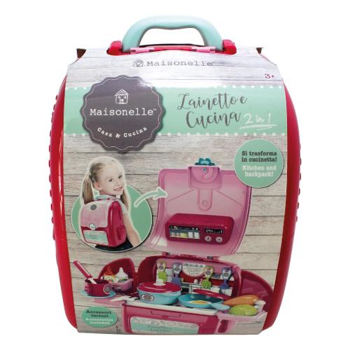 Maisonelle - zainetto cucina 2 in 1: zainetto apribile che si trasforma in cucina, accessori inclusi