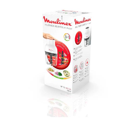 Grazie alle sue 4 lame affilate, il mini tritatutto Moulinette Essential trita, sminuzza e mescola qualsiasi ingrediente. Basta una semplice pressione sulla parte superiore per ottenere risultati facili e veloci. Oltre ad essere semplice da riporre, questo mini tritatutto è anche pratico da pulire, grazie alla sua superficie più liscia e alle parti amovibili.