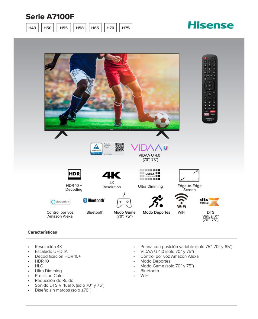 Tv 58" ( LED ) Vidaa U A7100F SERIES Smart TV VIDAA U Black 58A7120F