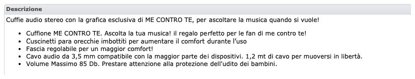 Scheda informativa del prodotto