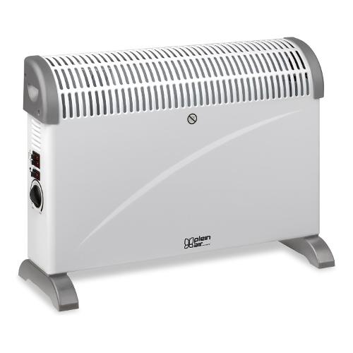 Termoconvettore elettrico con 3 livelli di potenza (750/1250/2000W). Funzione turboventilata. Termostato ambiente regolabile e di sicurezza antiriscaldamento. Area di copertura 20 m Piedini in plastica antigraffio.