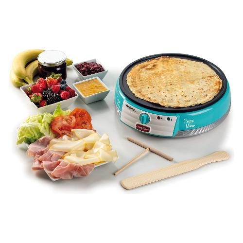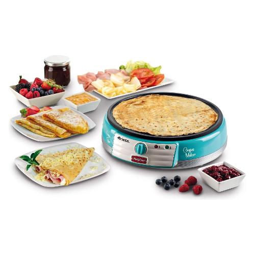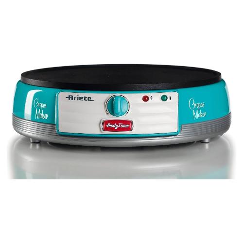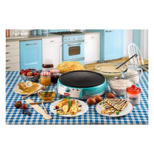 Porta in tavola l’allegria delle crepes fatte in casa, con la nuova Crepes Maker Party Time di Ariete: semplicissima da utilizzare e di cui non potrai più fare a meno per merende golose e feste a casa! La piastra elettrica è in materiale antiaderente ideale per per stendere e girare le crepes in tutta facilità, anche grazie alle due spatole in legno in dotazione e allo strumento stendi impasto.