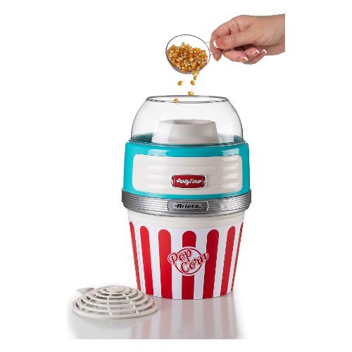 a nuova macchina per Pop Corn XL della linea Party Time di Ariete accompagnerà le tue serate in famiglia o con gli amici, con tanti popcorn croccanti e stuzzicanti pronti per essere sgranocchiati uno dopo l’altro. Grazie allo speciale metodo di cottura ad aria calda, Pop Corn XL Party Time trasforma, in meno di 2 minuti, 60 gr di mais, in fragranti e leggeri popcorn. Non avrai bisogno di aggiungere nient’altro, né olio né grassi, per ottenere così uno snack leggero, ma gustoso, tutto naturale e senza grassi. Grazie alla ciotola estraibile puoi portare direttamente in tavola o sul divano i tuoi popcorn caldi, croccanti e appena fatti!