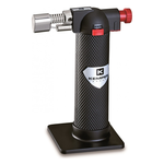 Microsaldatore portatile ricaricabilea gas butano, con accensione piezo elettrica. Può operare rovesciato. Tasto di regolazione gas e flusso aria. Capacità serbatoio 10 g, autonomia 70 min. Blocco di sicurezza. Ideale per saldature a stagno di precisione. Dotato di base d'appoggio.